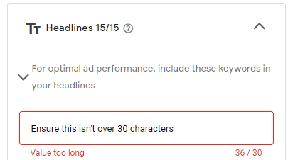 This error may be as simple as being above character limits for headlines, descriptions or sitelinks/ other assets, double check all of these are within the correct limits manually one by one, they do not always get highlighted red when you’ve gone over.